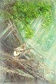 | Titolo: In preghiera al mattino Anno: 2007 Tipo: Tecnica mista su carta applicata a pannello telato Dimensioni: cm 35x62 |